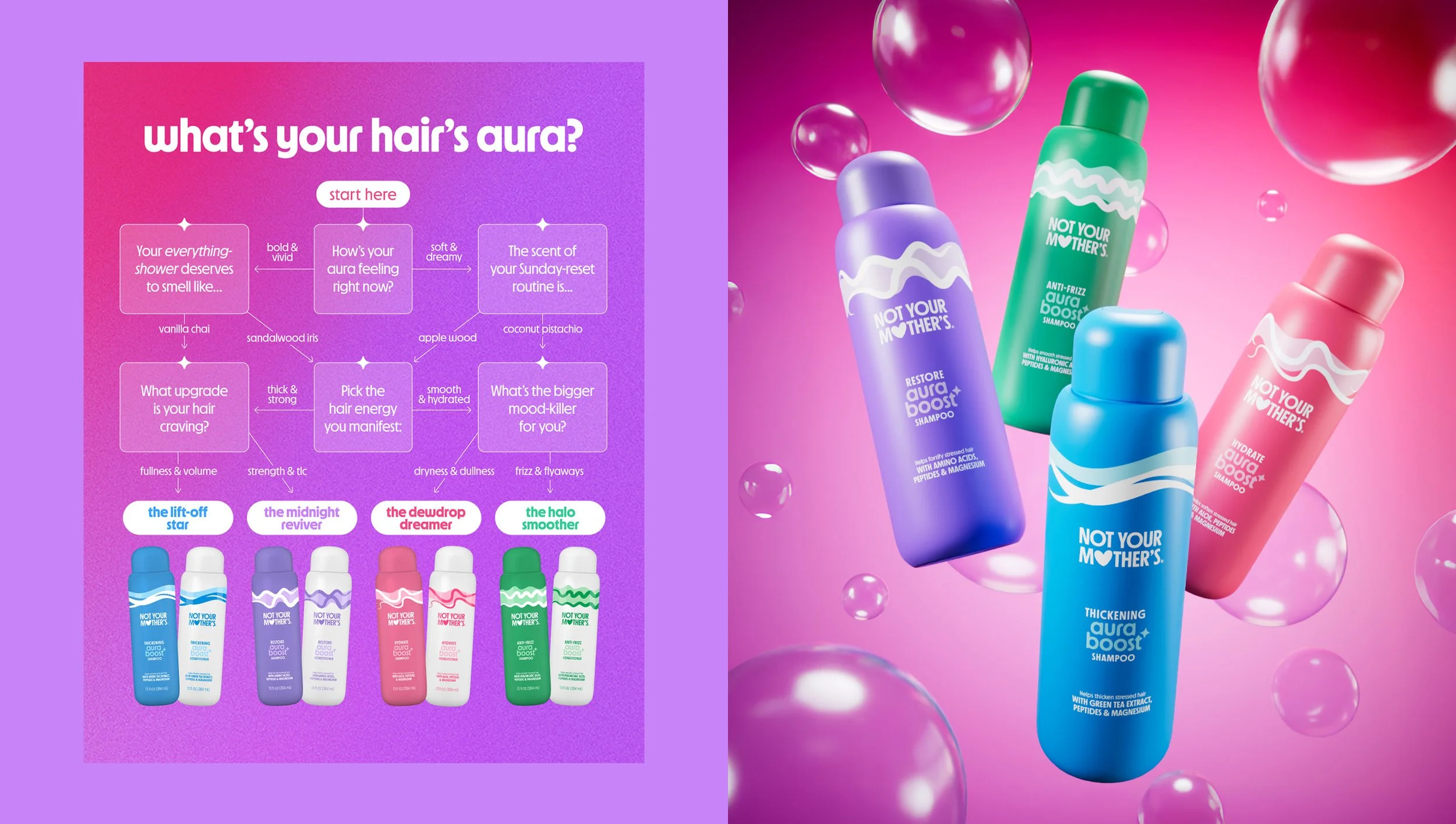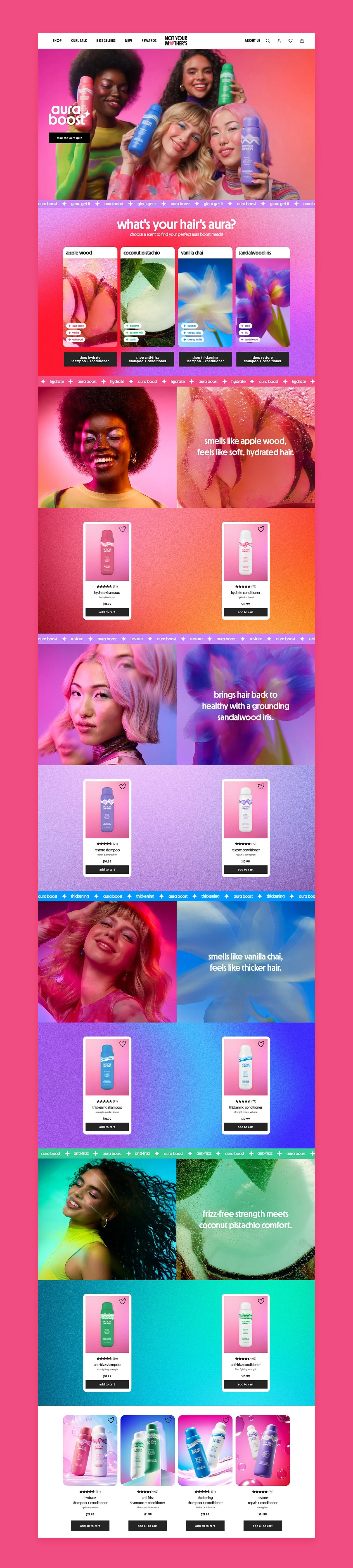 Not Your Mother’s launched a line of shampoo & conditioners infused with feel-good scents to match your aura and turn every shower into a self-care ritual. I developed assets for web, email, and social, and contributed to initial packaging concepts.